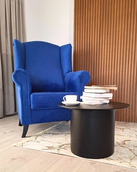 Couchtisch Eiche oval – Runder Design Couchtisch im skandinavischen Stil | Wohnzimmertisch Holz mit erhöhtem Rand – MAI- B schwarz