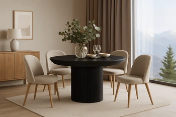 Ausziehbarer runder Tisch mit geriffeltem Tischbein, 130–180 cm, Modell T68