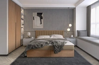 Funktionsbett 180x200 cm mit Stauraum – Polsterbett mit Bettkasten – Holzbett mit Kopfteil – Boxbett in Eiche-Optik – Modernes Bett 180x200 cm LIVANO