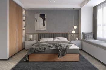 Funktionsbett 140x200 cm mit Stauraum – Polsterbett mit Bettkasten – Holzbett mit Kopfteil – Boxbett in Eiche-Optik – Modernes Bett 140x200 cm LIVANO
