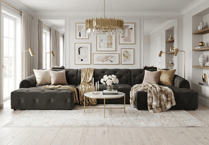 • Luxuriöser Glamour-Stil mit Chesterfield-Steppung
