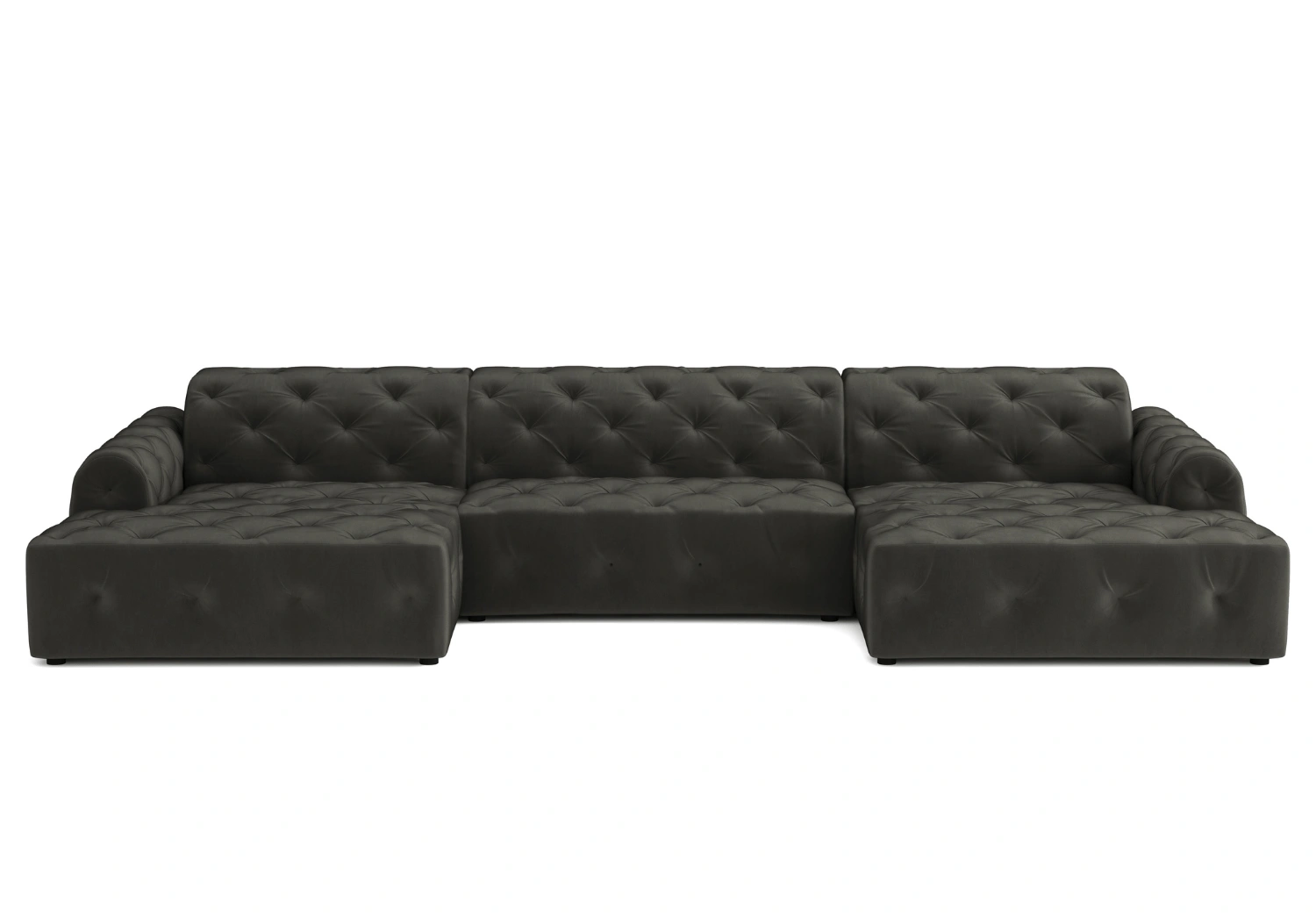 • Tiefe Steppungen mit dekorativen Knöpfen schaffen elegante, rautenförmige Vertiefungen auf der Oberfläche der Polsterung.