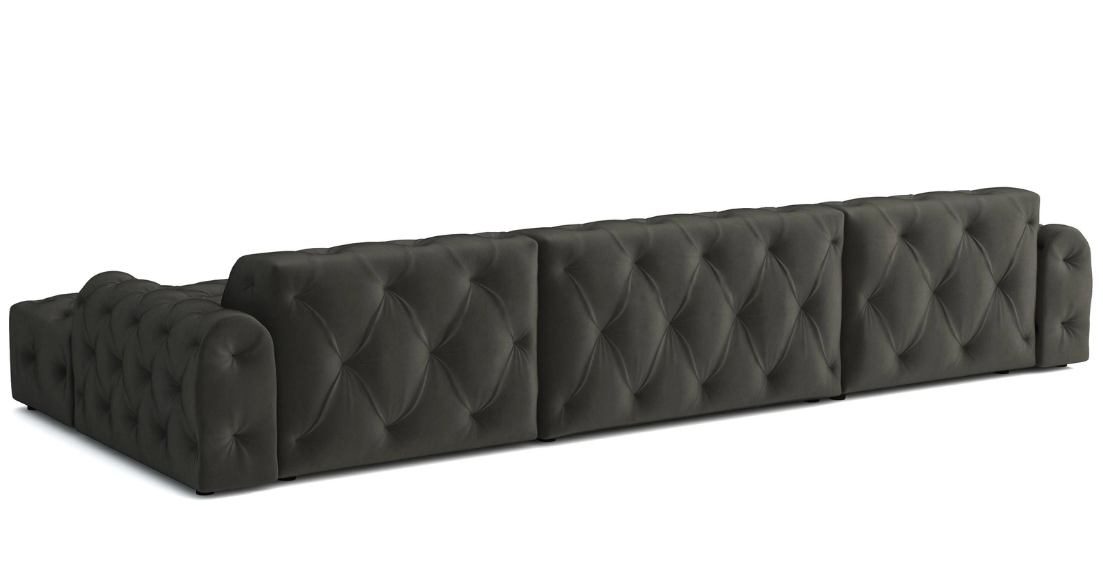 Das modulare Ecksofa Candi vereint s Design mit einem hohen Maß an Komfort und Flexibilität. Die tiefe Knopfleiste und die gesteppte Soft-Touch-Stoffpolsterung verleihen dem Sofa einen eleganten und modernen Look, der sich perfekt in jedes Wohnzimmer einfügt. Mit einer Breite von 390 cm und einer Tiefe von 170 cm bietet es großzügigen Platz für entspannte Stunden mit der Familie oder für gesellige Abende mit Gästen.