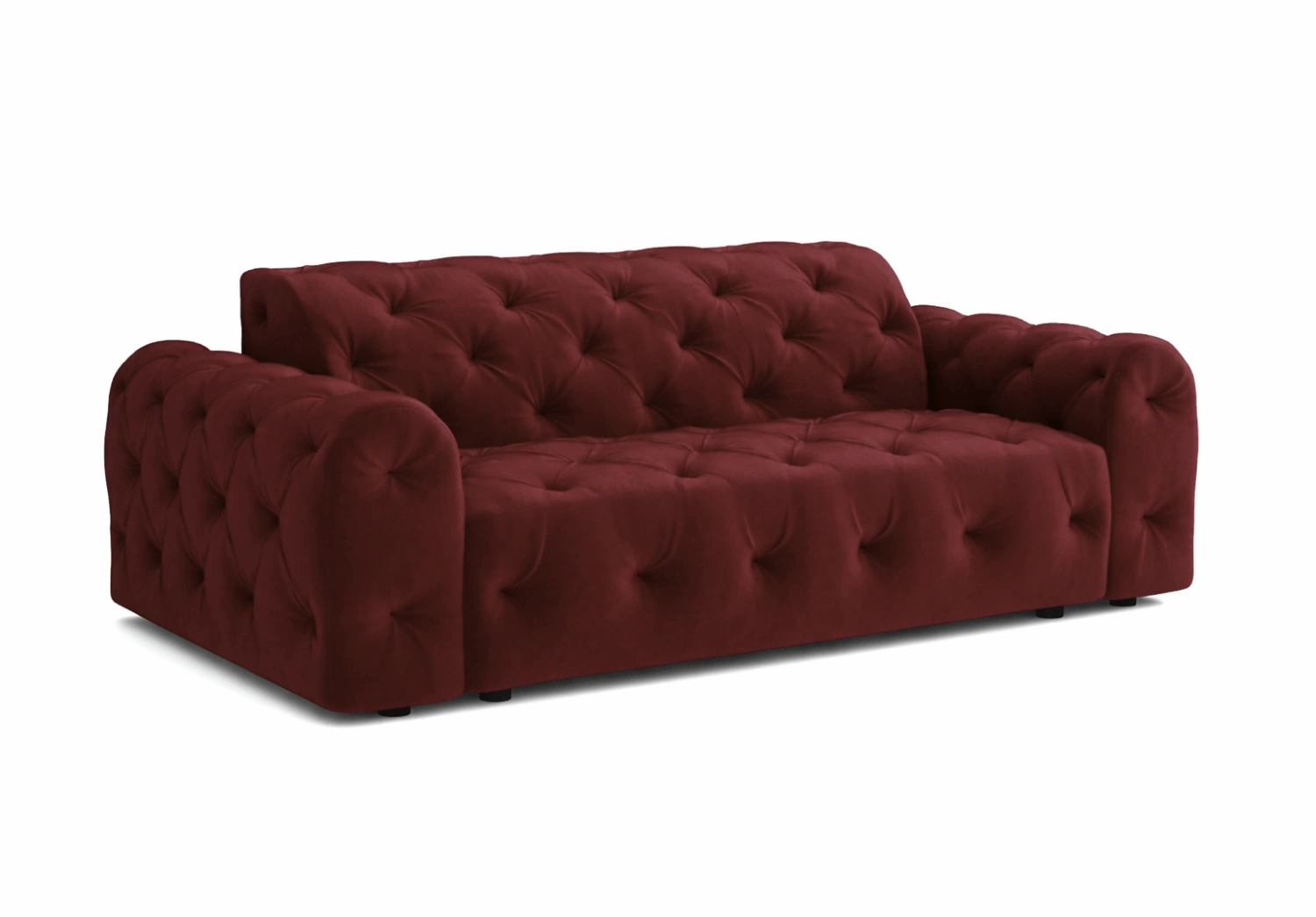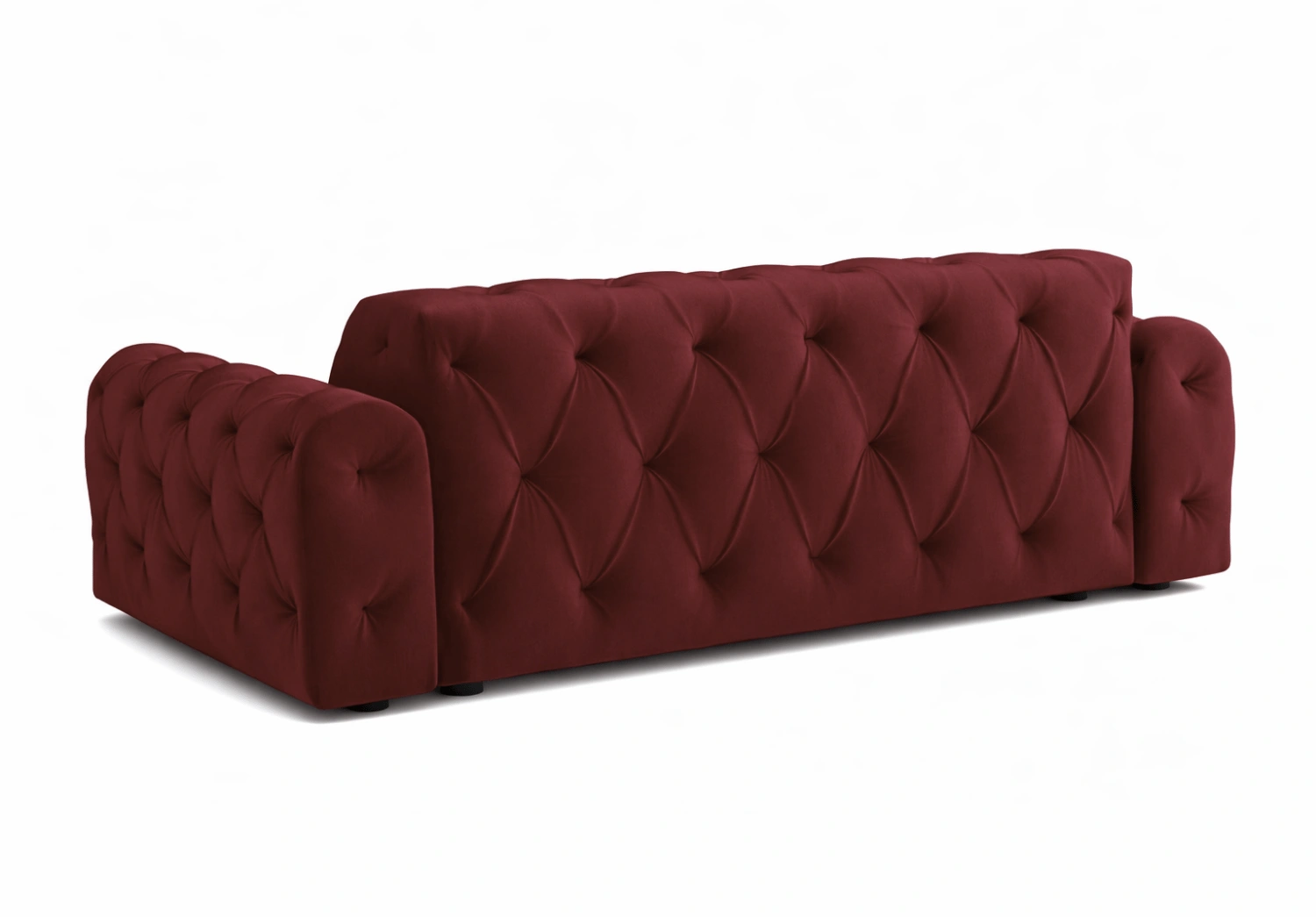 Tiefe Steppungen mit dekorativen Knöpfen bilden elegante, rautenförmige Vertiefungen auf der Polsteroberfläche.