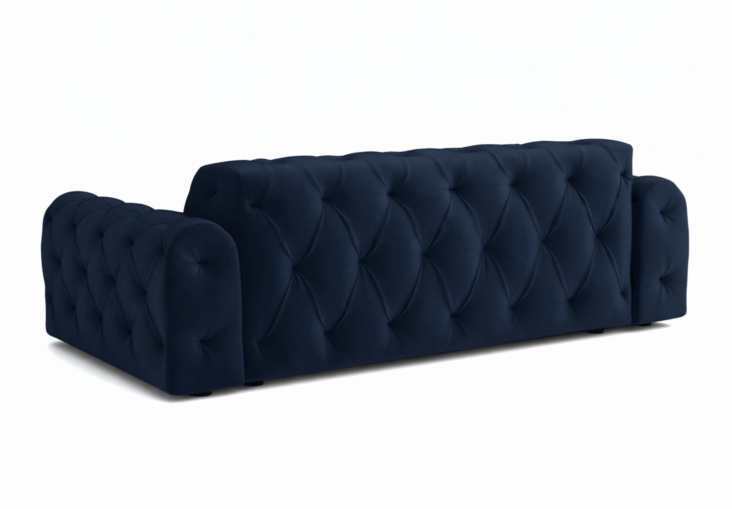 • Tiefe Steppungen mit dekorativen Knöpfen bilden elegante, rautenförmige Vertiefungen auf der Polsteroberfläche.