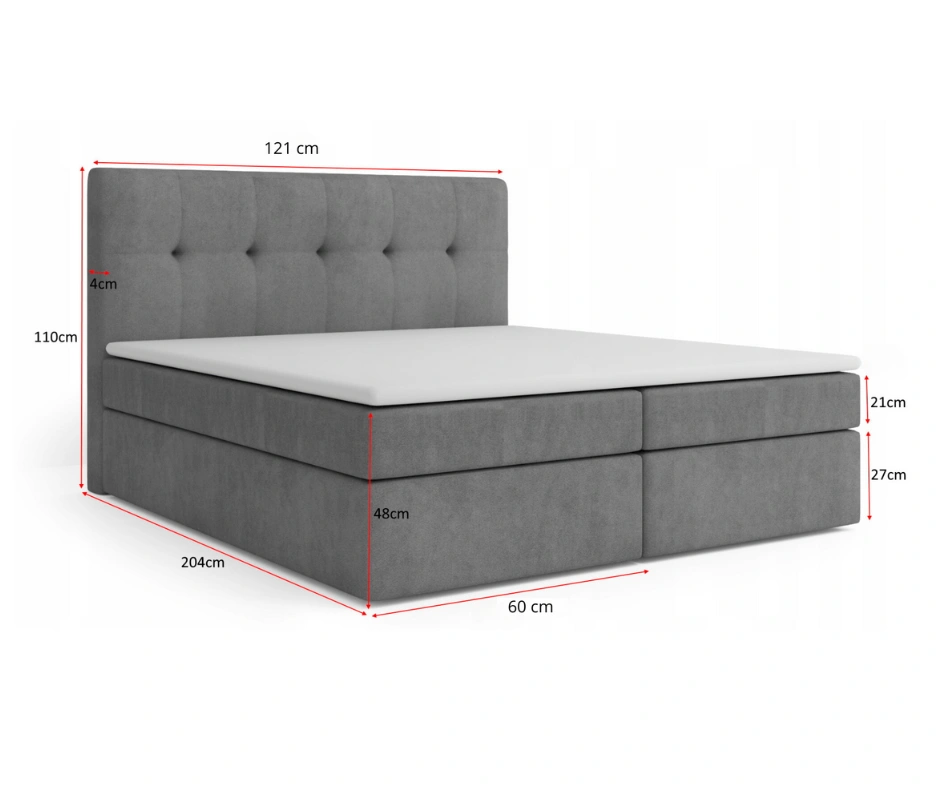 HOLLY ist die perfekte Wahl für alle, die Komfort, Funktionalität und Eleganz in einem Möbelstück suchen. Die großzügige Liegefläche von 120x200 cm bietet ausreichend Platz für erholsamen Schlaf, unabhängig von der bevorzugten Schlafposition. Zwei geräumige Schubladen unter dem Möbelstück schaffen zusätzlichen Stauraum für Bettwäsche oder andere Gegenstände, was eine effiziente Nutzung des Platzes im Schlafzimmer ermöglicht. Der strapazierfähige und zugleich weiche Stoffbezug mit leichtem Glanz verleiht dem Möbelstück eine Ausstrahlung. Durch das hochwertige Design fügt sich HOLLY nahtlos in moderne und elegante Innenräume ein und verleiht ihnen eine besondere Note. Die im Lieferumfang enthaltene, Auflage passt sich dem Körper optimal an und sorgt für hohen Schlafkomfort. Ergonomische Eigenschaften fördern die Regeneration und unterstützen gesunden Schlaf. Dank der Möglichkeit, Farbe und Material individuell auszuwählen, lässt sich das Möbelstück perfekt an den eigenen Geschmack und den Stil des Raumes anpassen. Diese Flexibilität macht HOLLY zur idealen Ergänzung sowohl in klassischen als auch in modernen Einrichtungsstilen. Die robuste Konstruktion aus langlebigen Materialien sorgt für langfristige Stabilität. Der einfache Aufbau wird durch die mitgelieferte Anleitung erleichtert, und die Lieferung in praktischen Paketen vereinfacht den Transport. HOLLY vereint Funktionalität, Stil und Komfort und schafft so einen stilvollen Ort für erholsame Nächte.