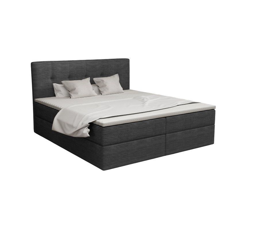 HOLLY ist die perfekte Wahl für alle, die Komfort, Funktionalität und Eleganz in einem Möbelstück suchen. Die großzügige Liegefläche von 160x200 cm bietet ausreichend Platz für erholsamen Schlaf, unabhängig von der bevorzugten Schlafposition. Zwei geräumige Schubladen unter dem Möbelstück schaffen zusätzlichen Stauraum für Bettwäsche oder andere Gegenstände, was eine effiziente Nutzung des Platzes im Schlafzimmer ermöglicht. Der strapazierfähige und zugleich weiche Stoffbezug mit leichtem Glanz verleiht dem Möbelstück eine Ausstrahlung. Durch das hochwertige Design fügt sich HOLLY nahtlos in moderne und elegante Innenräume ein und verleiht ihnen eine besondere Note. Die im Lieferumfang enthaltene, Auflage passt sich dem Körper optimal an und sorgt für hohen Schlafkomfort. Ergonomische Eigenschaften fördern die Regeneration und unterstützen gesunden Schlaf. Dank der Möglichkeit, Farbe und Material individuell auszuwählen, lässt sich das Möbelstück perfekt an den eigenen Geschmack und den Stil des Raumes anpassen. Diese Flexibilität macht HOLLY zur idealen Ergänzung sowohl in klassischen als auch in modernen Einrichtungsstilen. Die robuste Konstruktion aus langlebigen Materialien sorgt für langfristige Stabilität. Der einfache Aufbau wird durch die mitgelieferte Anleitung erleichtert, und die Lieferung in praktischen Paketen vereinfacht den Transport. HOLLY vereint Funktionalität, Stil und Komfort und schafft so einen stilvollen Ort für erholsame Nächte.