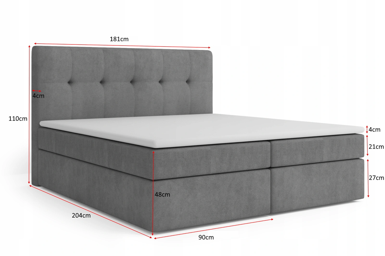 HOLLY ist die perfekte Wahl für alle, die Komfort, Funktionalität und Eleganz in einem Möbelstück suchen. Die großzügige Liegefläche von 180x200 cm bietet ausreichend Platz für erholsamen Schlaf, unabhängig von der bevorzugten Schlafposition. Zwei geräumige Schubladen unter dem Möbelstück schaffen zusätzlichen Stauraum für Bettwäsche oder andere Gegenstände, was eine effiziente Nutzung des Platzes im Schlafzimmer ermöglicht. Der strapazierfähige und zugleich weiche Stoffbezug mit leichtem Glanz verleiht dem Möbelstück eine Ausstrahlung. Durch das hochwertige Design fügt sich HOLLY nahtlos in moderne und elegante Innenräume ein und verleiht ihnen eine besondere Note. Die im Lieferumfang enthaltene, Auflage passt sich dem Körper optimal an und sorgt für hohen Schlafkomfort. Ergonomische Eigenschaften fördern die Regeneration und unterstützen gesunden Schlaf. Dank der Möglichkeit, Farbe und Material individuell auszuwählen, lässt sich das Möbelstück perfekt an den eigenen Geschmack und den Stil des Raumes anpassen. Diese Flexibilität macht HOLLY zur idealen Ergänzung sowohl in klassischen als auch in modernen Einrichtungsstilen. Die robuste Konstruktion aus langlebigen Materialien sorgt für langfristige Stabilität. Der einfache Aufbau wird durch die mitgelieferte Anleitung erleichtert, und die Lieferung in praktischen Paketen vereinfacht den Transport. HOLLY vereint Funktionalität, Stil und Komfort und schafft so einen stilvollen Ort für erholsame Nächte.