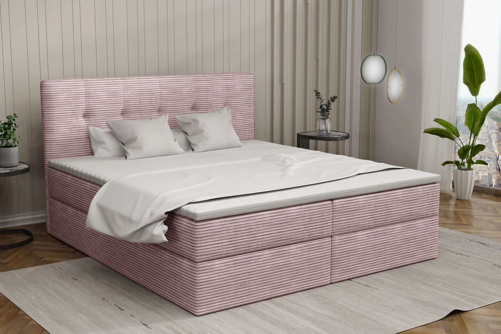 HOLLY ist die perfekte Wahl für alle, die Komfort, Funktionalität und Eleganz in einem Möbelstück suchen. Die großzügige Liegefläche von 200x200 cm bietet ausreichend Platz für erholsamen Schlaf, unabhängig von der bevorzugten Schlafposition. Zwei geräumige Schubladen unter dem Möbelstück schaffen zusätzlichen Stauraum für Bettwäsche oder andere Gegenstände, was eine effiziente Nutzung des Platzes im Schlafzimmer ermöglicht. Der strapazierfähige und zugleich weiche Stoffbezug mit leichtem Glanz verleiht dem Möbelstück eine Ausstrahlung. Durch das hochwertige Design fügt sich HOLLY nahtlos in moderne und elegante Innenräume ein und verleiht ihnen eine besondere Note. Die im Lieferumfang enthaltene, Auflage passt sich dem Körper optimal an und sorgt für hohen Schlafkomfort. Ergonomische Eigenschaften fördern die Regeneration und unterstützen gesunden Schlaf. Dank der Möglichkeit, Farbe und Material individuell auszuwählen, lässt sich das Möbelstück perfekt an den eigenen Geschmack und den Stil des Raumes anpassen. Diese Flexibilität macht HOLLY zur idealen Ergänzung sowohl in klassischen als auch in modernen Einrichtungsstilen. Die robuste Konstruktion aus langlebigen Materialien sorgt für langfristige Stabilität. Der einfache Aufbau wird durch die mitgelieferte Anleitung erleichtert, und die Lieferung in praktischen Paketen vereinfacht den Transport. HOLLY vereint Funktionalität, Stil und Komfort und schafft so einen stilvollen Ort für erholsame Nächte.