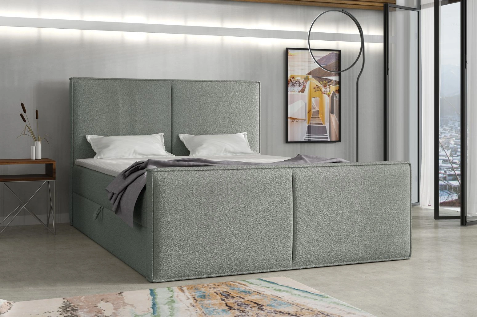 Boxspringbett mit Topper und Bettkasten, Polsterbett, Doppelbett, Bett 120x200 cm Calipso Minze