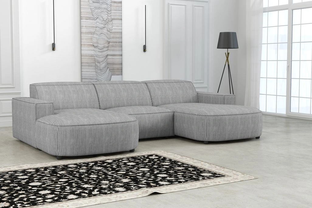 Unser Ecksofa in U-Form vereint Komfort und Eleganz und verwandelt Ihr Wohnzimmer in einen gemütlichen Rückzugsort. Mit seinem modernen Design, abgerundeten Kanten und dezenten Metallfüßen passt es perfekt in klassische, moderne und retro Wohnstile. Der hochwertige, strapazierfähige Cordstoff (POSO-Stoff) ist weich und pflegeleicht, während die geräumige Sitzfläche mit Maßen von 284x166 cm ausreichend Platz für Familie und Freunde bietet. Die breiten Armlehnen sorgen für zusätzlichen Komfort und laden zum Entspannen ein – ein ideales Sofa für entspannte Stunden in stilvoller Umgebung.