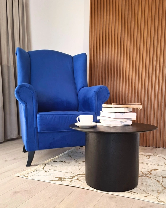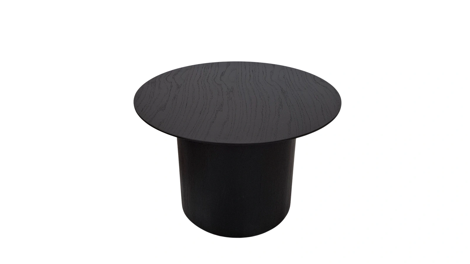 Dank seiner kompakten Maße von 60 × 40 cm eignet sich der Tisch ideal für das Wohnzimmer sowie für kleinere Räume – neben dem Ecksofa, der Couch oder dem Sessel. Die runde Tischplatte auf einer zylindrischen Basis bildet eine harmonische Einheit und unterstreicht den modernen, organischen Charakter des Möbelstücks.