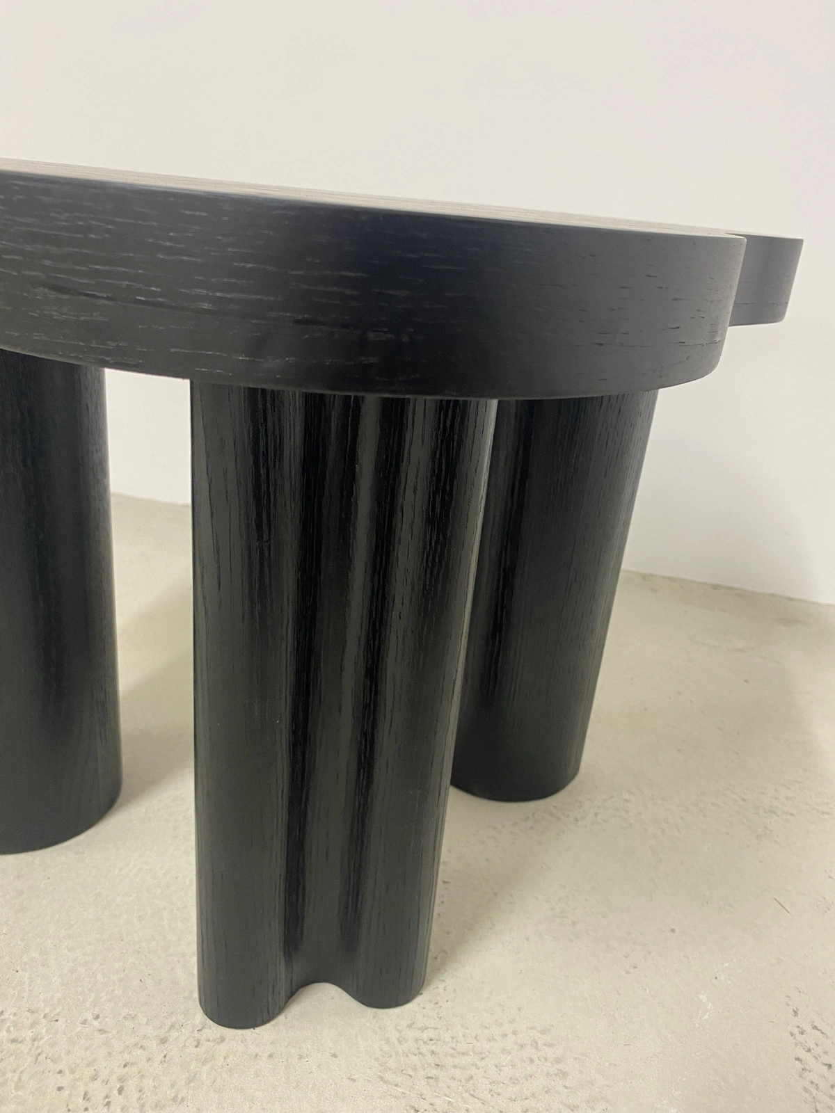 Dank der Beine aus massivem Holz bleibt der Tisch stabil und hochwertig – auch bei täglichem Gebrauch. Die Kombination aus dunkler Farbgebung und natürlicher Formgebung macht ihn zu einem eleganten Blickfang – ob im Wohnzimmer, Schlafzimmer oder im Flur.