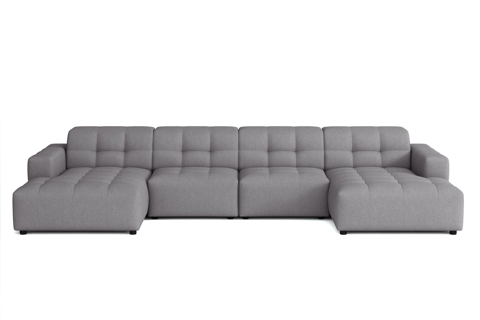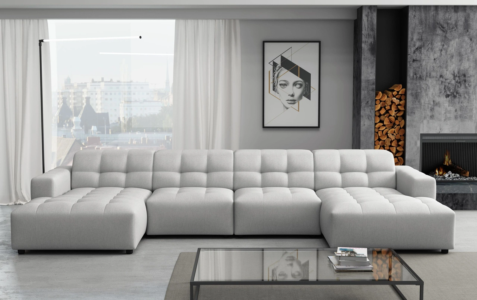 Das modulare Ecksofa Bergi verbindet Komfort und Eleganz in einem modernen Design und passt mit seinen großzügigen Maßen von 364x166x70 cm perfekt in große Wohnräume. Der strapazierfähige und weiche Bezugsstoff bietet langanhaltenden Komfort, während die hochwertige Polsterung aus hochelastischem Polyurethanschaum und die Wellenfederung für optimalen Sitzkomfort sorgen. Dank der modularen Bauweise lassen sich die einzelnen Elemente flexibel anordnen und individuell an Ihr Interieur und Ihren Lebensstil anpassen. Gestepptes Polster und breite Sitze unterstreichen den modernen Look des Sofas, das in verschiedenen Farbvarianten erhältlich ist. Die robuste Konstruktion aus Holz und Spanplatte gewährleistet Langlebigkeit, während das klare Design einen Hauch von Luxus in Ihr Zuhause bringt.