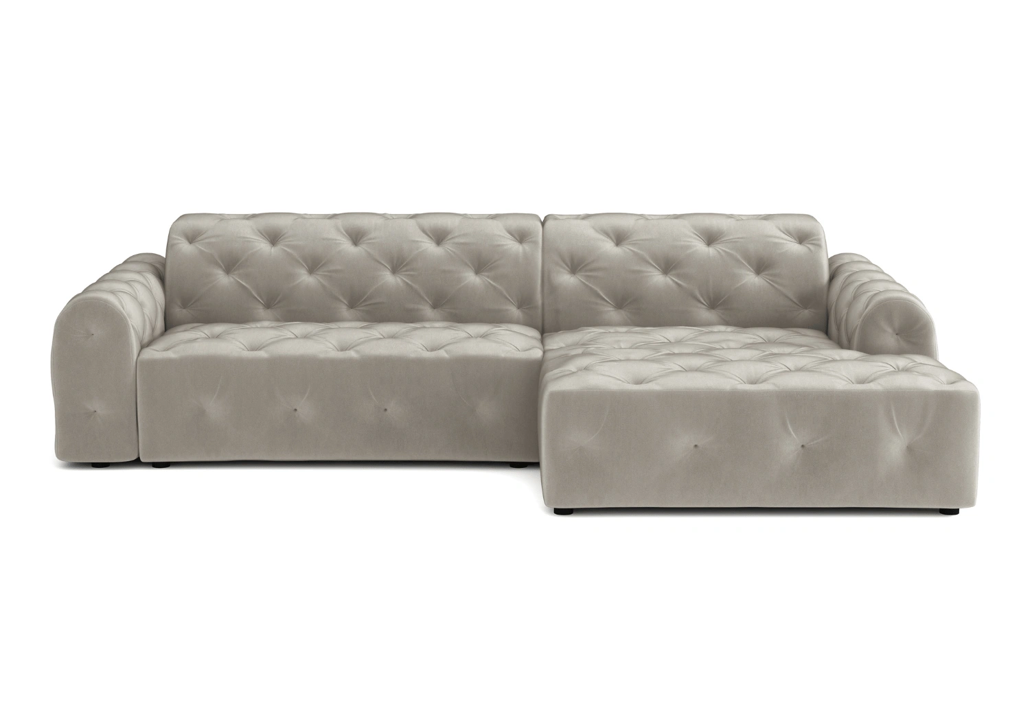 Das Ecksofa Candi vereint modernes Design mit einem Hauch von klassischer Eleganz. Die charakteristische Chesterfield-Knopfheftung und die tiefen Polster verleihen dem Sofa einen n Look, der anspruchsvolle Innenräume perfekt ergänzt. Mit einer Breite von 260 cm und einer Tiefe von 170 cm bietet die L-Form des Sofas viel Platz für die ganze Familie oder für Gäste, ohne dabei zu viel Raum einzunehmen – ideal für kleinere Wohnungen.