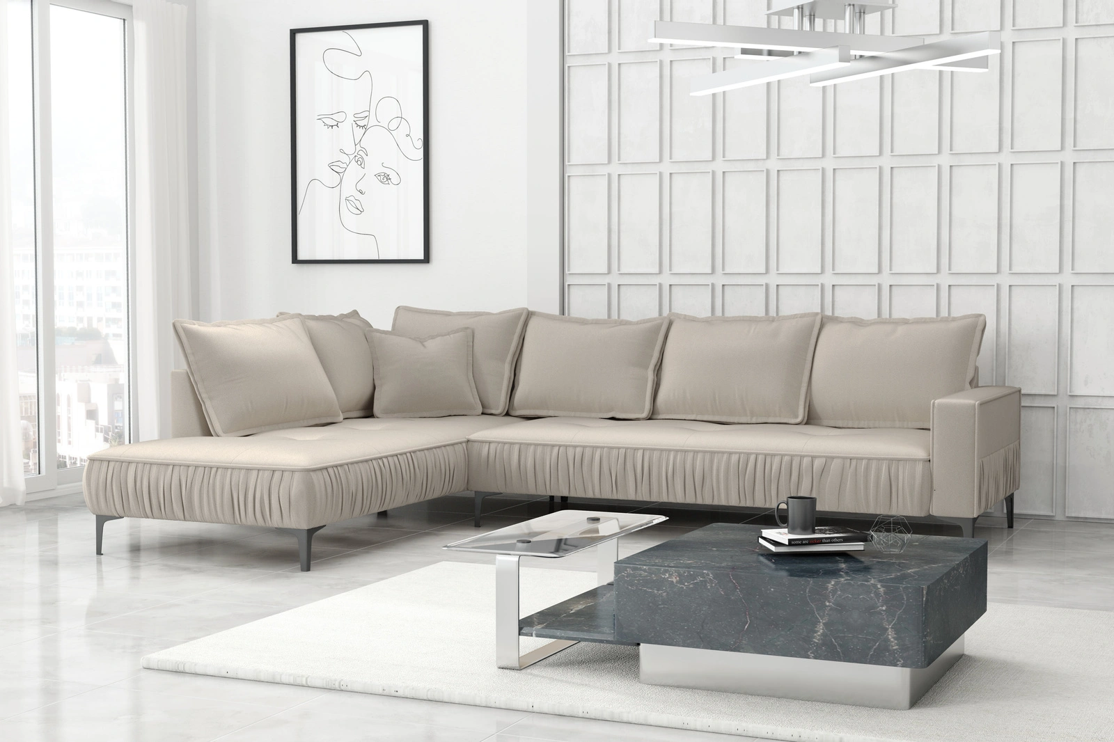 Vielseitiges L-förmiges Design: Die praktische L-Form passt ideal in Ecken und schafft eine gemütliche Sitzatmosphäre für Gäste und Familie.