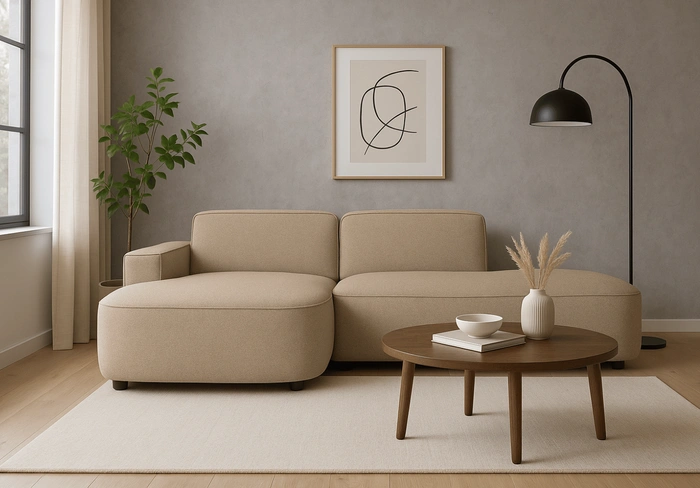 Das Ecksofa Lucas bringt modernes Design und hochwertigen Komfort in Ihr Zuhause. Mit seinem eleganten grauen Stoffbezug, den abgerundeten Formen und stabilen Chromfüßen fügt es sich nahtlos in jede Einrichtung ein. Die Polsterung aus Bonell-Federkern und Polyurethanschaum bietet hohen Sitzkomfort und sorgt für entspanntes Sitzen. Dank seiner großzügigen Maße von 284x166x70 cm bietet das Sofa ausreichend Platz für Familie und Freunde und ist ideal für gesellige Abende. Das Ecksofa Lucas ist die perfekte Kombination aus Stil und Funktionalität – ein Möbelstück für jedes moderne Wohnzimmer.
