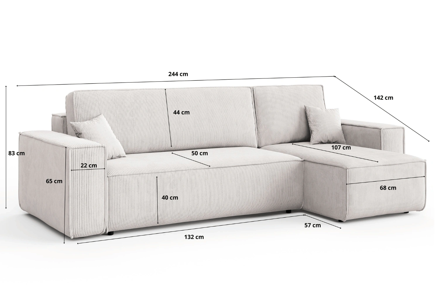 Ecksofa mit Schlaffunktion und Bettkasten L-form 244x142x80 cm Denis
