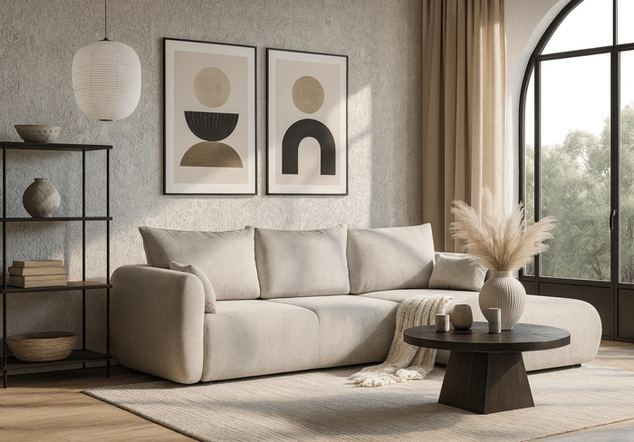Dieses multifunktionale Schlafsofa vereint stilvolles Design mit praktischer Funktionalität. Ausgestattet mit einer bequemen Bettfunktion und einer hochwertigen Taschenfederkernmatratze sorgt es sowohl im Sitzen als auch im Schlafen für maximalen Komfort. Der integrierte Bettkasten bietet großzügigen Stauraum für Bettwäsche und Kissen, während die stabile Konstruktion aus Buchenholz und langlebigen Materialien jahrelange Haltbarkeit garantiert.