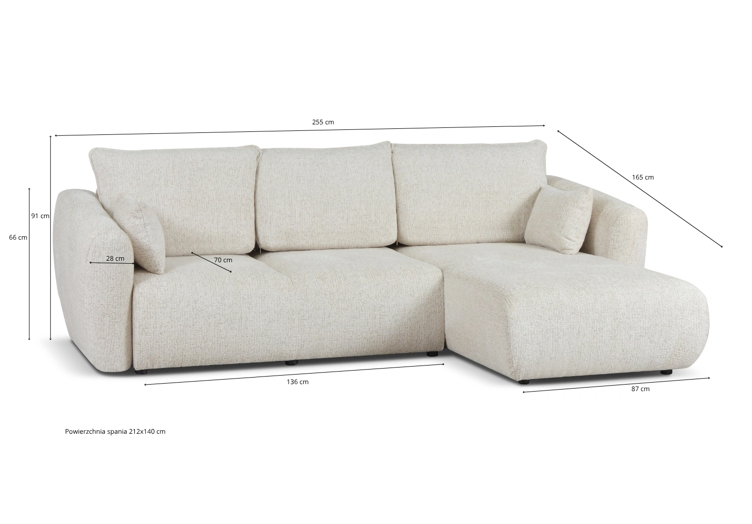 Ecksofa mit Schlaffunktion und Bettkasten, L-form 255x165x91 cm Lola