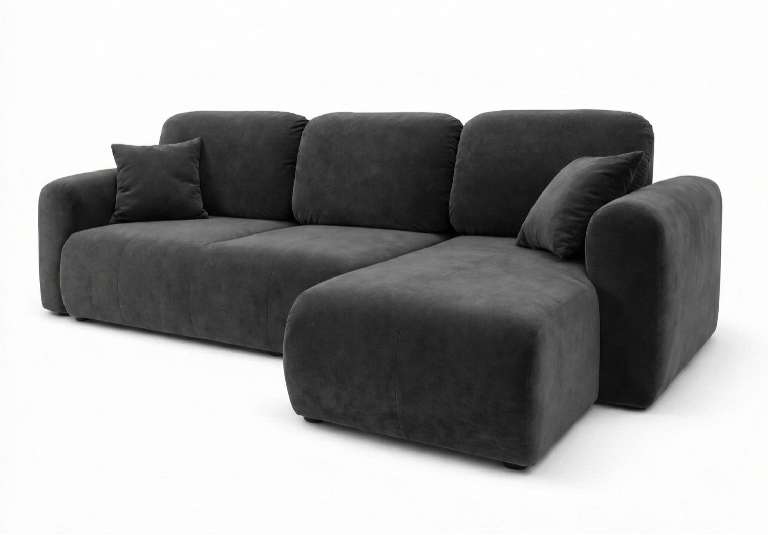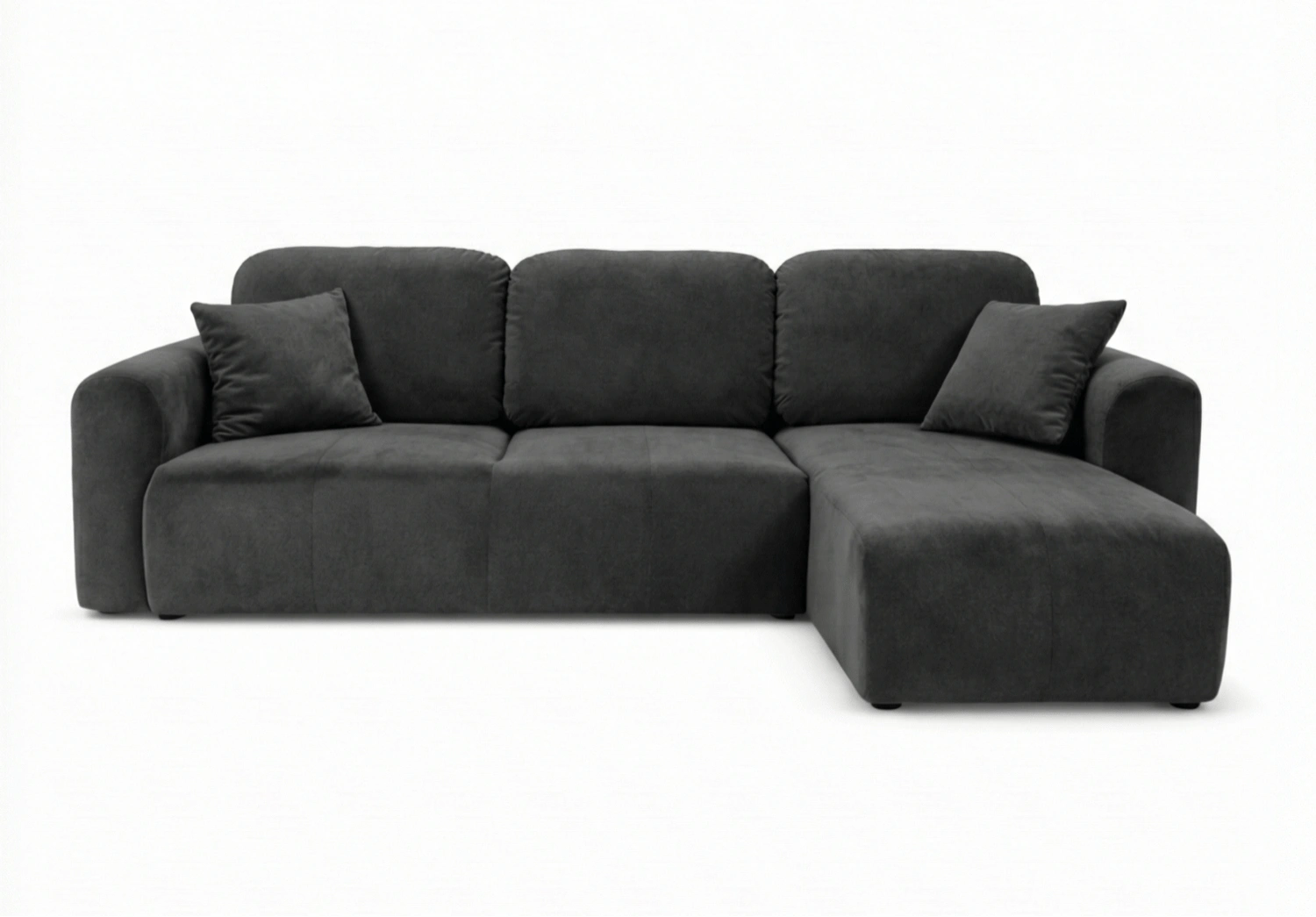 Die Ecksofa UNO zeichnet sich durch eine moderne, minimalistische Silhouette sowie sanft gerundete Linien aus, die ihr einen besonders gemütlichen Charakter verleihen. Die dezente Form fügt sich perfekt in aktuelle Einrichtungstrends ein – von modern und skandinavisch bis hin zu Japandi oder Soft Loft. Weiche Rückenkissen unterstreichen die Eleganz und die optische Leichtigkeit des Sofas.