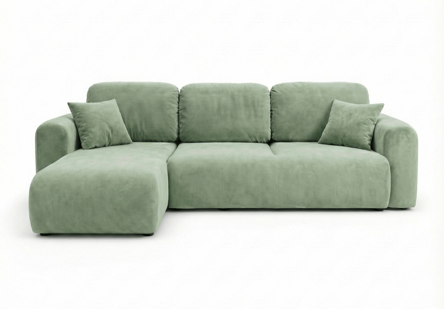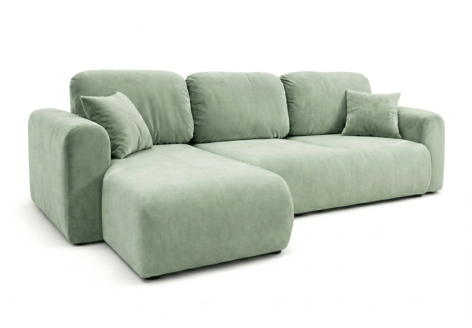 Die Ecksofa UNO zeichnet sich durch eine moderne, minimalistische Silhouette sowie sanft gerundete Linien aus, die ihr einen besonders gemütlichen Charakter verleihen. Die dezente Form fügt sich perfekt in aktuelle Einrichtungstrends ein – von modern und skandinavisch bis hin zu Japandi oder Soft Loft. Weiche Rückenkissen unterstreichen die Eleganz und die optische Leichtigkeit des Sofas.