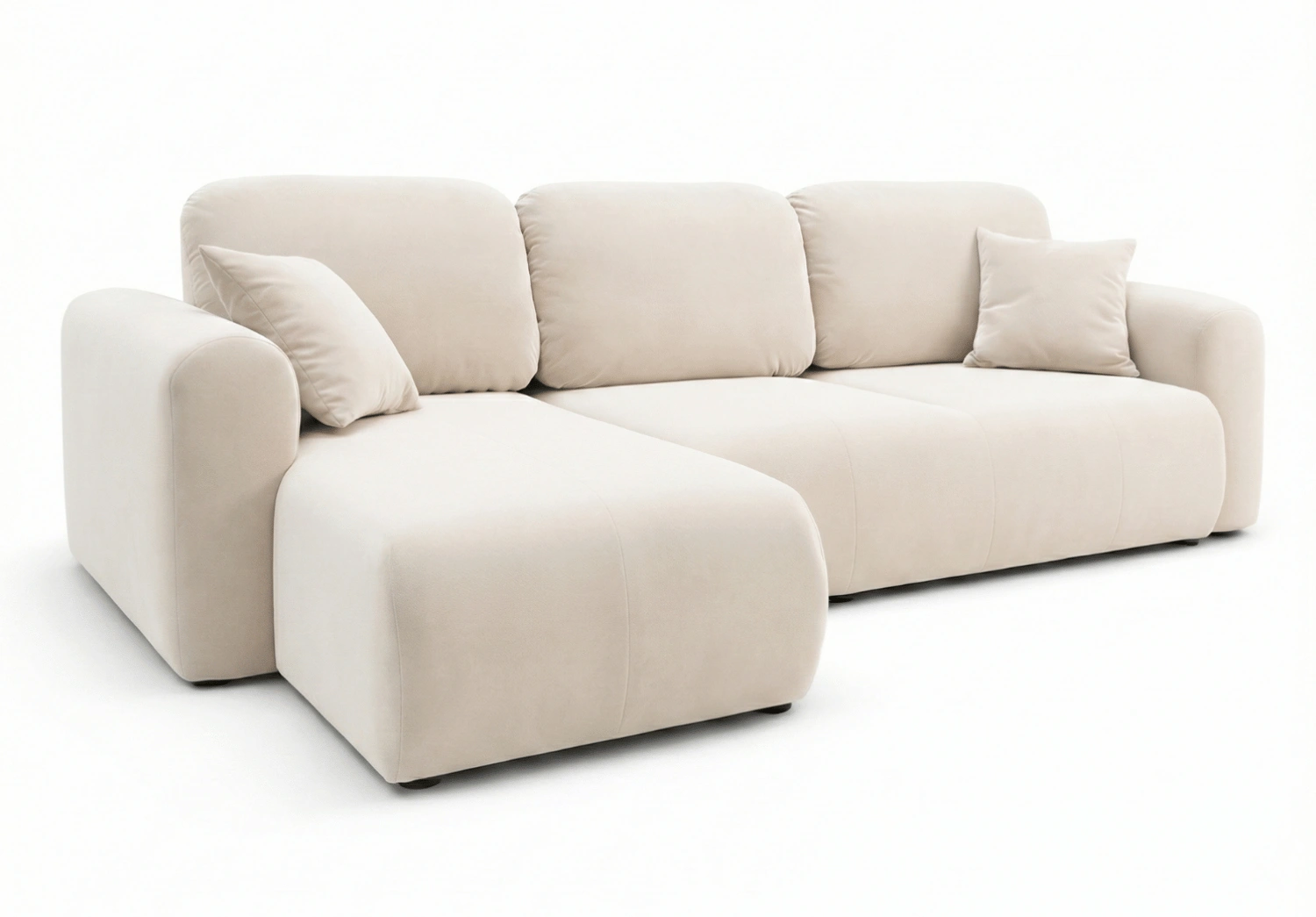 Die Ecksofa UNO zeichnet sich durch eine moderne, minimalistische Silhouette sowie sanft gerundete Linien aus, die ihr einen besonders gemütlichen Charakter verleihen. Die dezente Form fügt sich perfekt in aktuelle Einrichtungstrends ein – von modern und skandinavisch bis hin zu Japandi oder Soft Loft. Weiche Rückenkissen unterstreichen die Eleganz und die optische Leichtigkeit des Sofas.