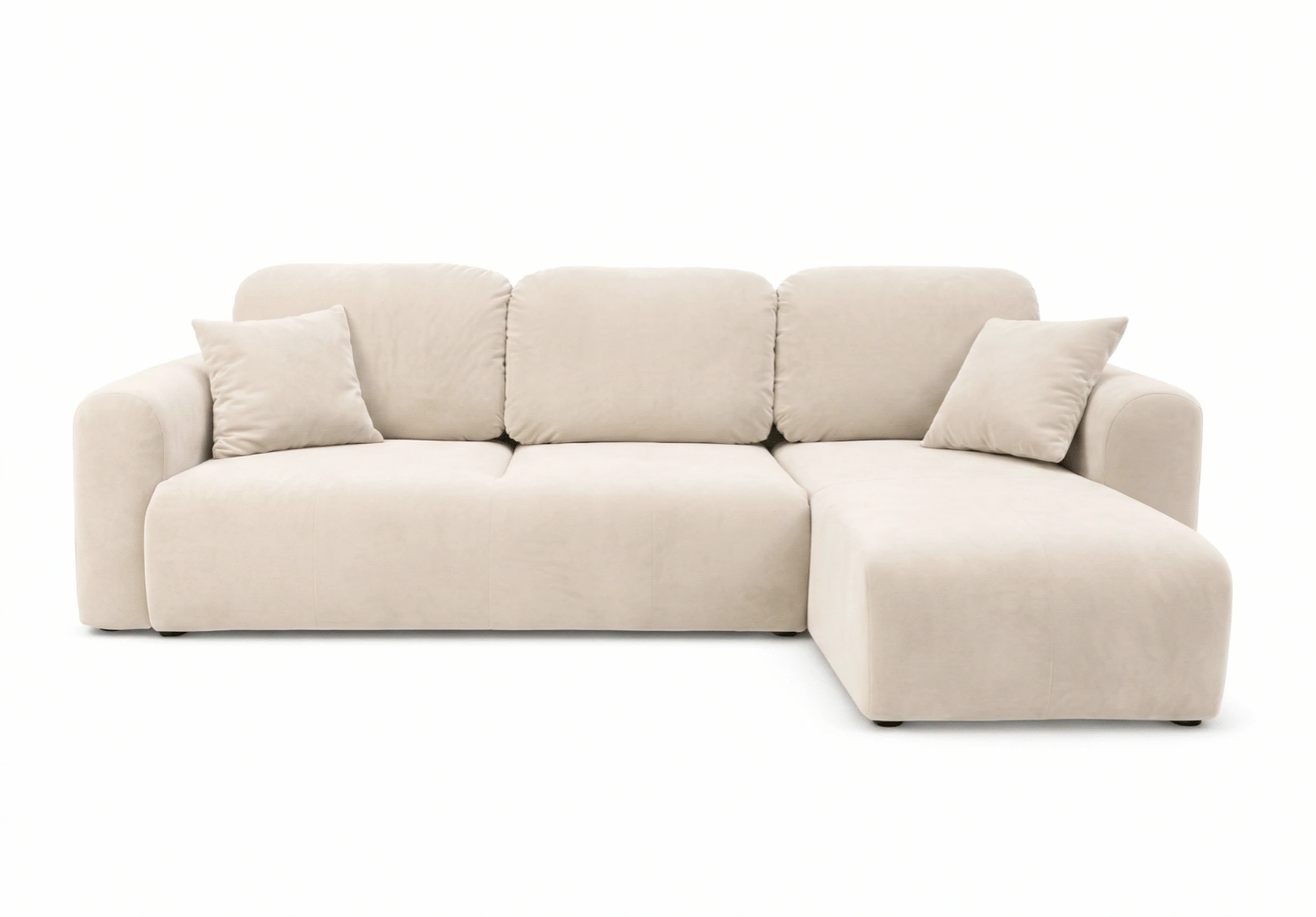 Die Ecksofa UNO zeichnet sich durch eine moderne, minimalistische Silhouette sowie sanft gerundete Linien aus, die ihr einen besonders gemütlichen Charakter verleihen. Die dezente Form fügt sich perfekt in aktuelle Einrichtungstrends ein – von modern und skandinavisch bis hin zu Japandi oder Soft Loft. Weiche Rückenkissen unterstreichen die Eleganz und die optische Leichtigkeit des Sofas.