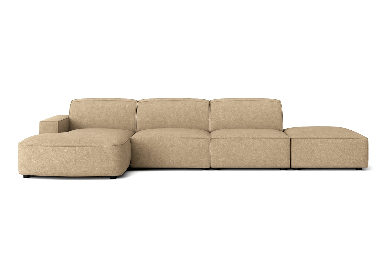Das Ecksofa Lukas besticht durch sein modulares Design, das aus vier Teilen besteht, die sich individuell anpassen lassen. Mit einer großzügigen Breite von 341 cm ist es ideal für große Wohnräume. Der Stoffbezug verleiht dem Sofa einen eleganten und modernen Look, der sich in jedes Interieur einfügt. Die großzügige Sitztiefe von 60 cm lädt zum Entspannen ein.