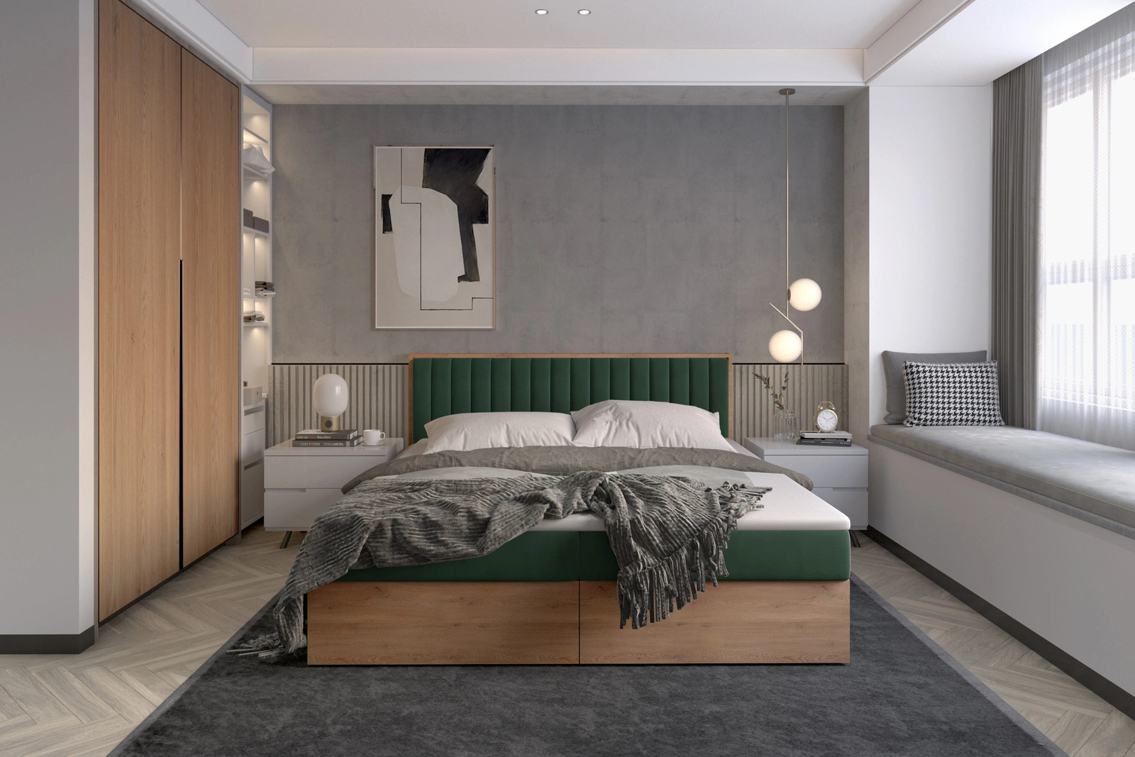 Das LIVANO Polsterbett 160x200 cm mit Stauraum überzeugt durch modernes Design, hohen Komfort und praktische Funktionen. Die stabile Rahmenkonstruktion sorgt für Langlebigkeit und Sicherheit, während das weich gepolsterte Kopfteil angenehmes Anlehnen beim Lesen oder Fernsehen ermöglicht. Dank des integrierten Bettkastens bietet das Bett zusätzlichen Stauraum für Decken, Kissen oder Bettwäsche und schafft so Ordnung im Schlafzimmer. Als stilvolle Alternative zum Boxspringbett 160x200 verbindet es elegantes Aussehen mit praktischer Funktionalität. Das Bett 160x200 mit Stauraum eignet sich ideal für Paare, kann aber auch als großzügiges Einzelbett genutzt werden. Mit seiner hochwertigen Verarbeitung ist es vielseitig einsetzbar – sowohl im Hauptschlafzimmer als auch als komfortables Gästebett. Wer ein modernes, funktionales und gleichzeitig gemütliches Polsterbett sucht, findet mit dem LIVANO Modell die perfekte Lösung.