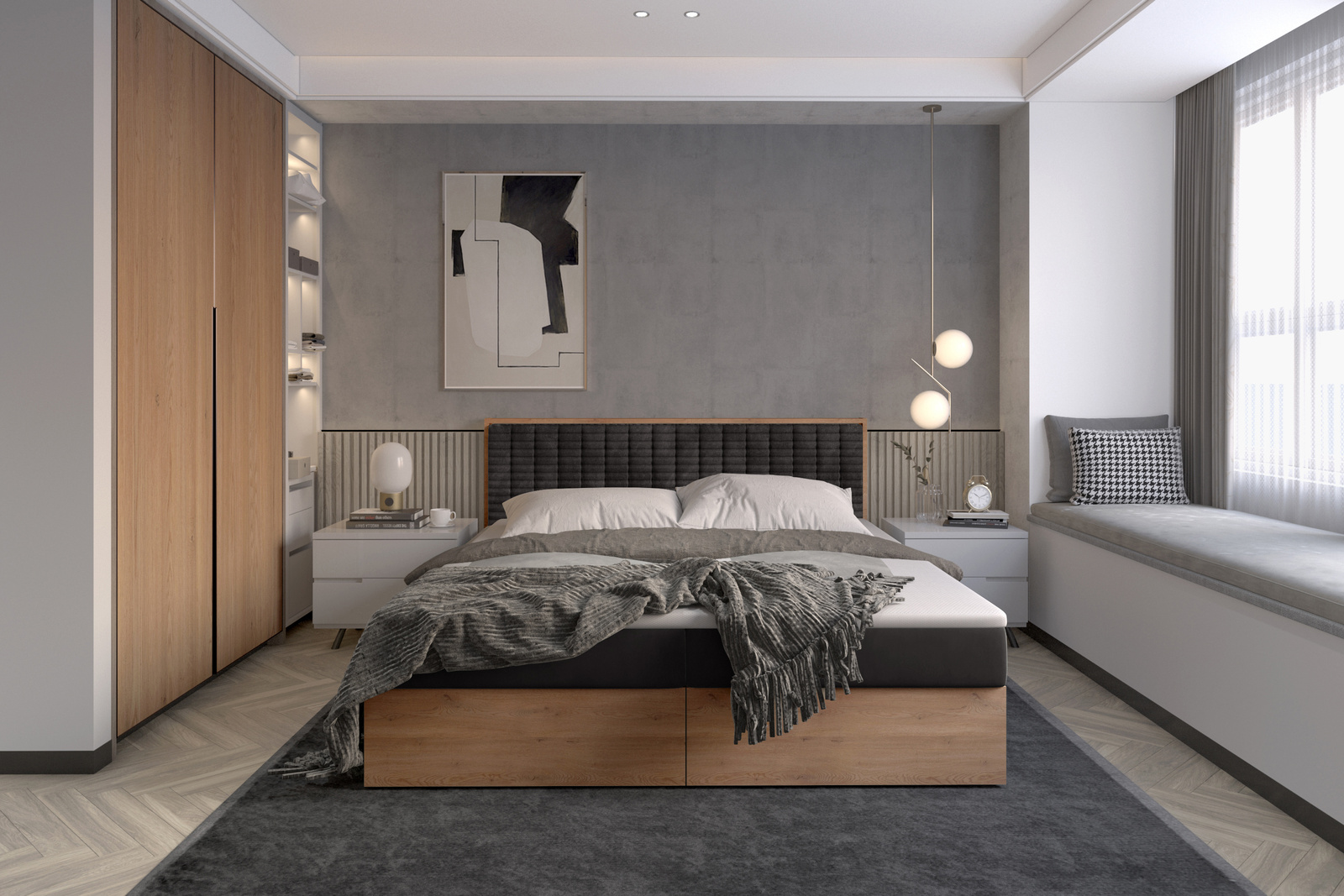 • Bett 160x200– Flexibel einsetzbar für kleine oder große Räume, eignet sich dieses moderne Bett sowohl für Singles als auch für Paare und bietet in beiden Größen maximalen Komfort.
