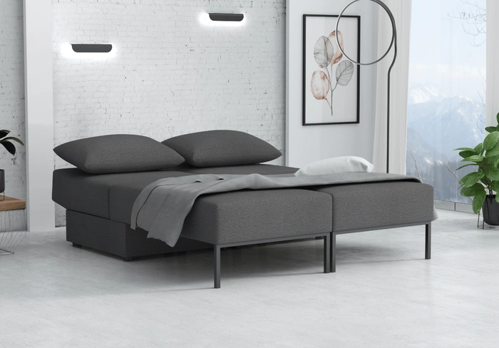 • Einfache Umstellung: Die Konfiguration des Möbelstücks ist in wenigen Minuten manuell anpassbar – als Doppelbett, Tagesbett oder komfortable Sitzgelegenheit.