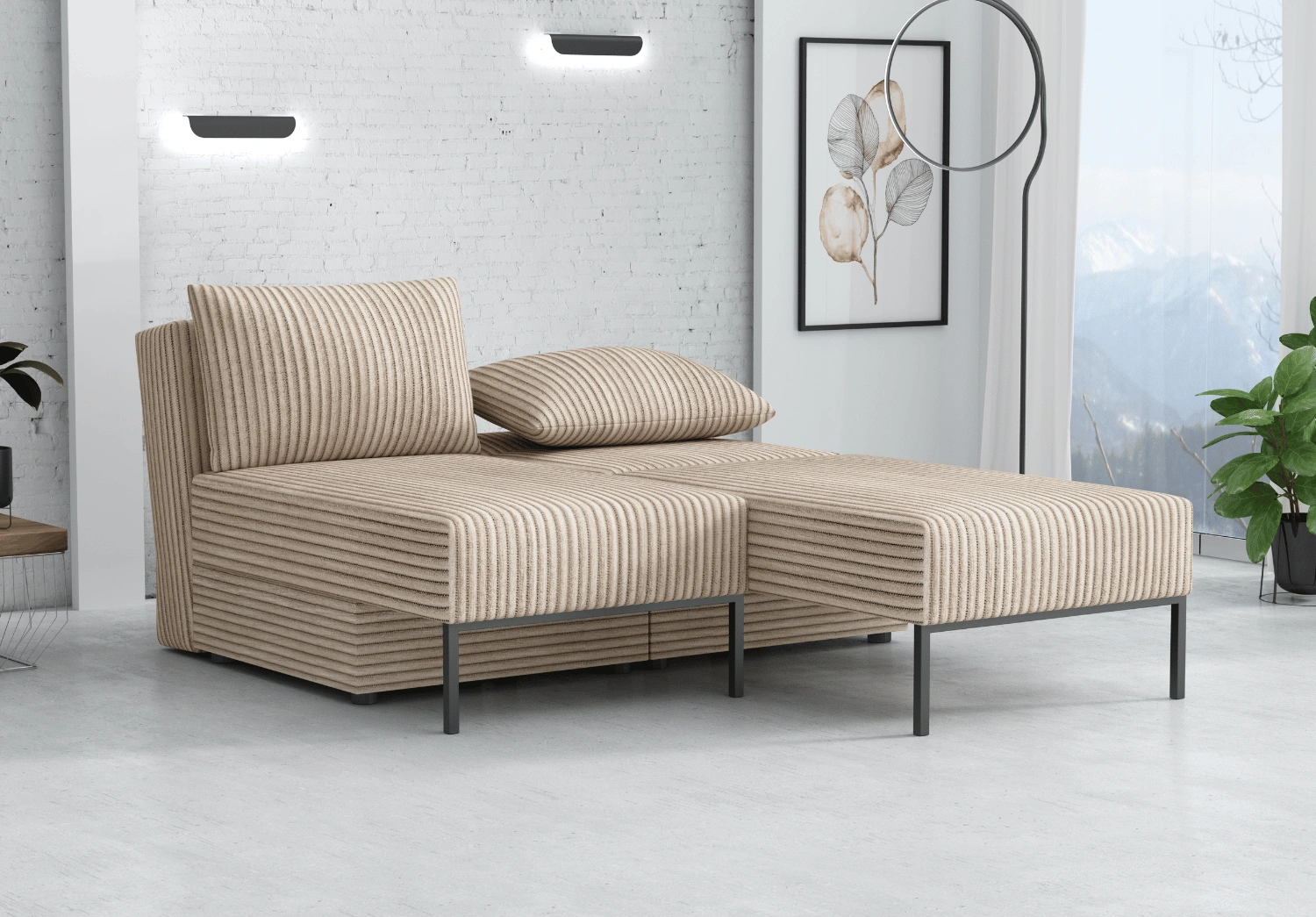 • Einfache Umstellung: Die Konfiguration des Möbelstücks ist in wenigen Minuten manuell anpassbar – als Doppelbett, Tagesbett oder komfortable Sitzgelegenheit.