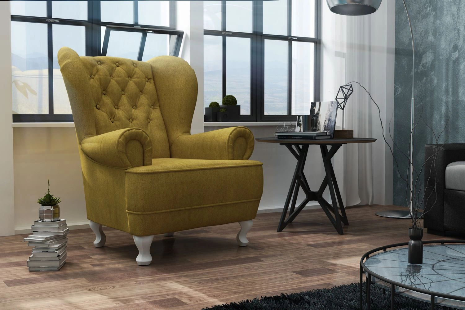 Dieser gepolsterte Ohrensessel ist die perfekte Ergänzung sowohl für klassische als auch avantgardistische Inneneinrichtungen.