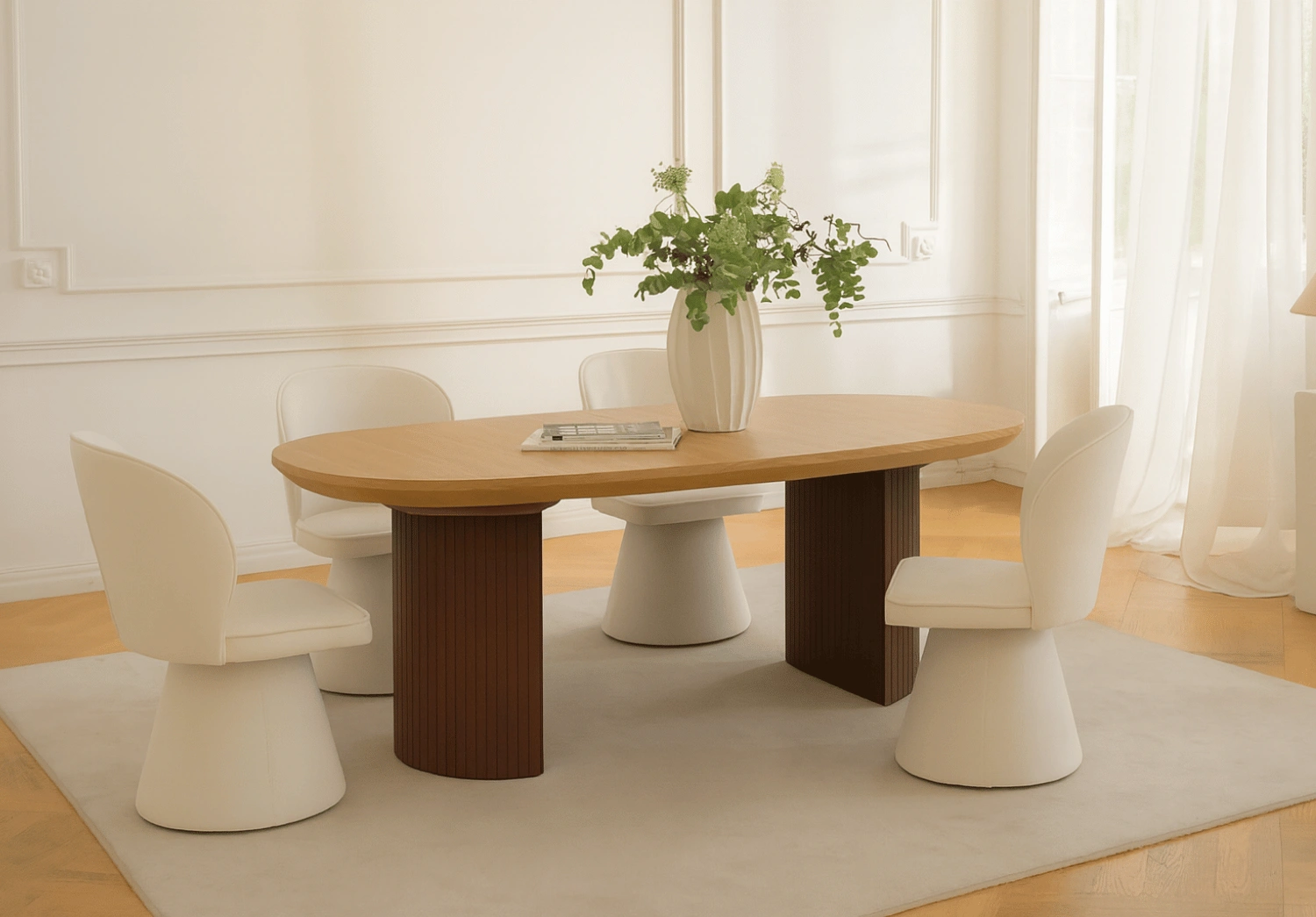 Ovale Tisch, Esstisch Mit Gerillten Beinen T72 200-300 cm