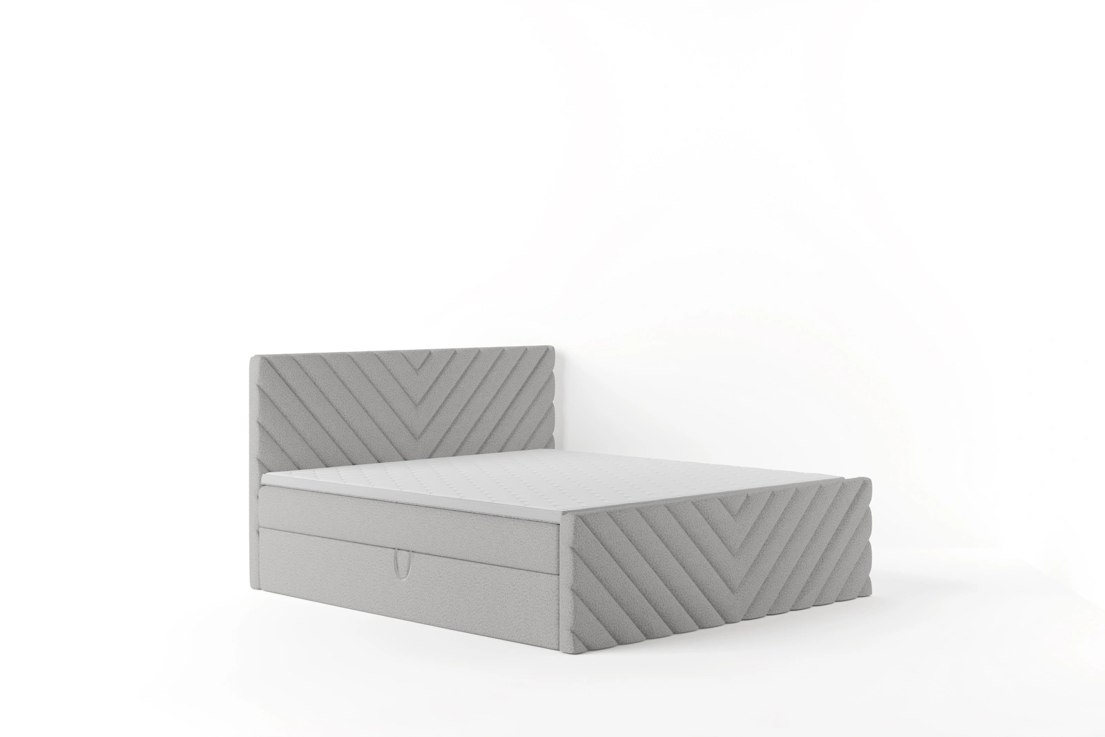 Das weich gepolsterte Kopfteil und Fußteil mit Rautensteppung verleihen dem Bett ein hochwertiges, designerisches Erscheinungsbild. Der Bezug aus edlem Samtstoff in Grau sorgt für ein wohnliches und gemütliches Ambiente. Ideal für entspanntes Sitzen, Lesen oder Fernsehen im Bett.