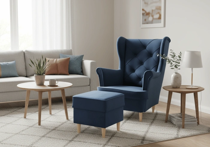 - Massive Buchenholzfüße: Die Füße aus massivem Buchenholz verleihen dem Sessel Stabilität und einen natürlichen skandinavischen Look, der sich perfekt in moderne und klassische Einrichtungen einfügt.