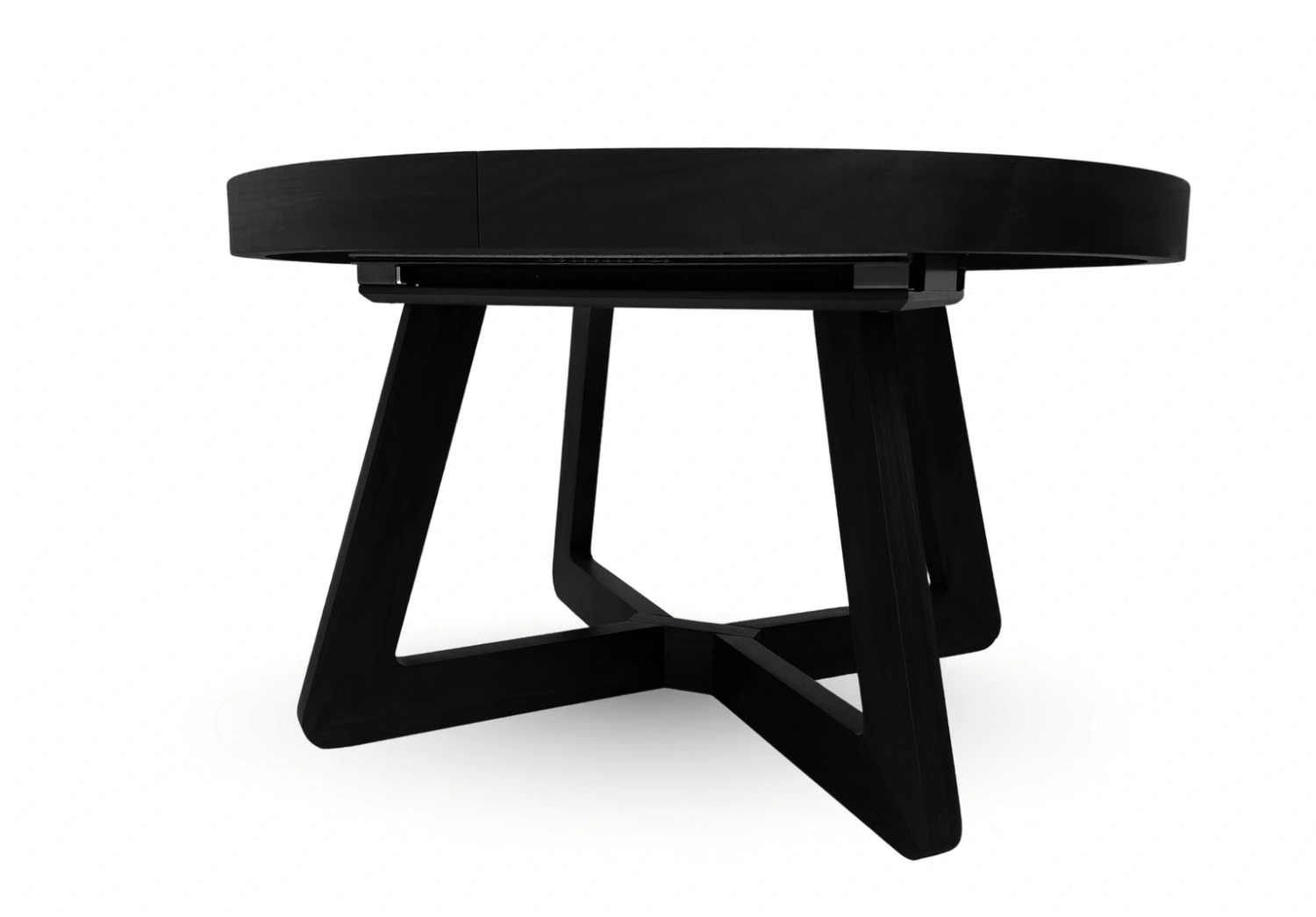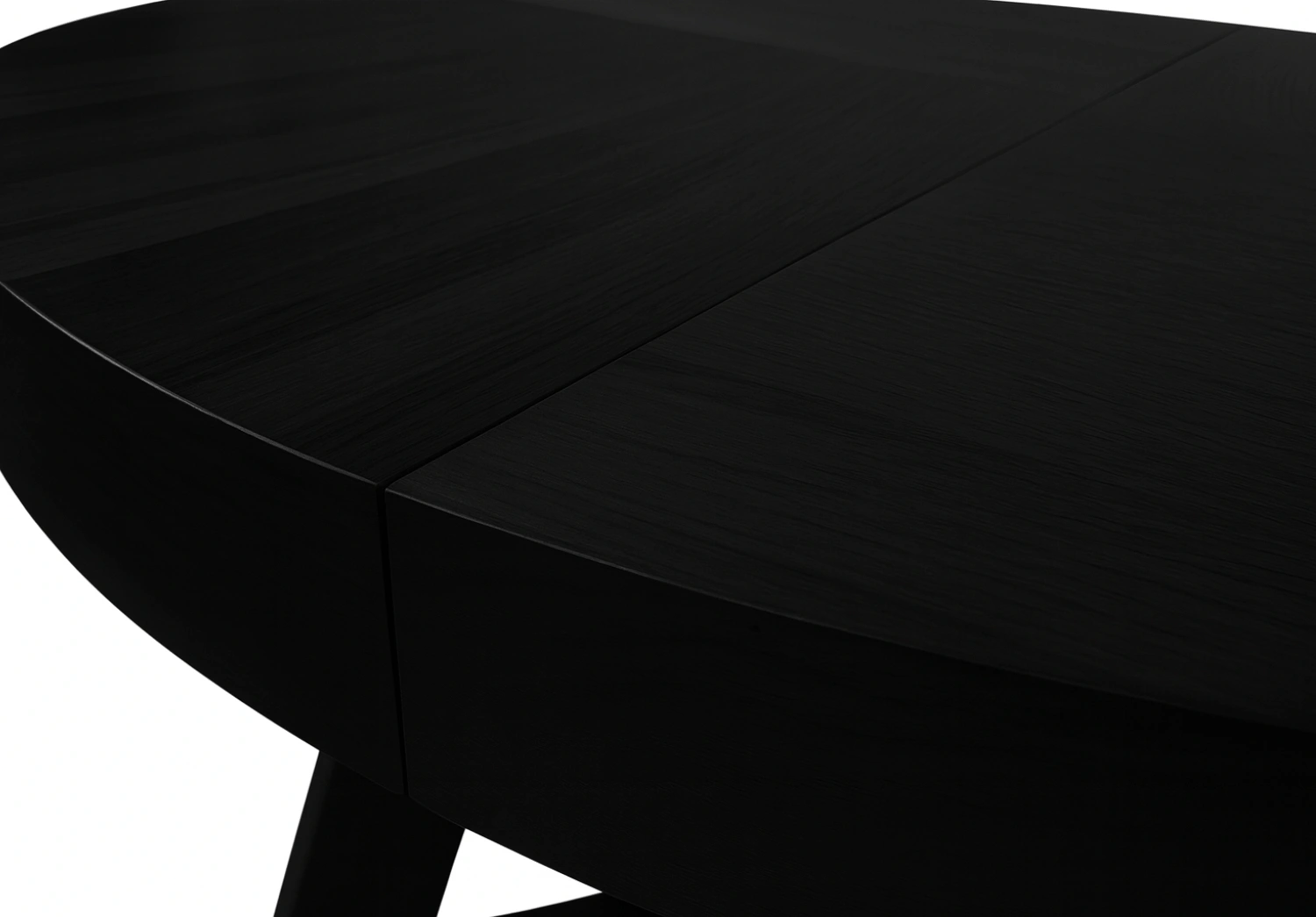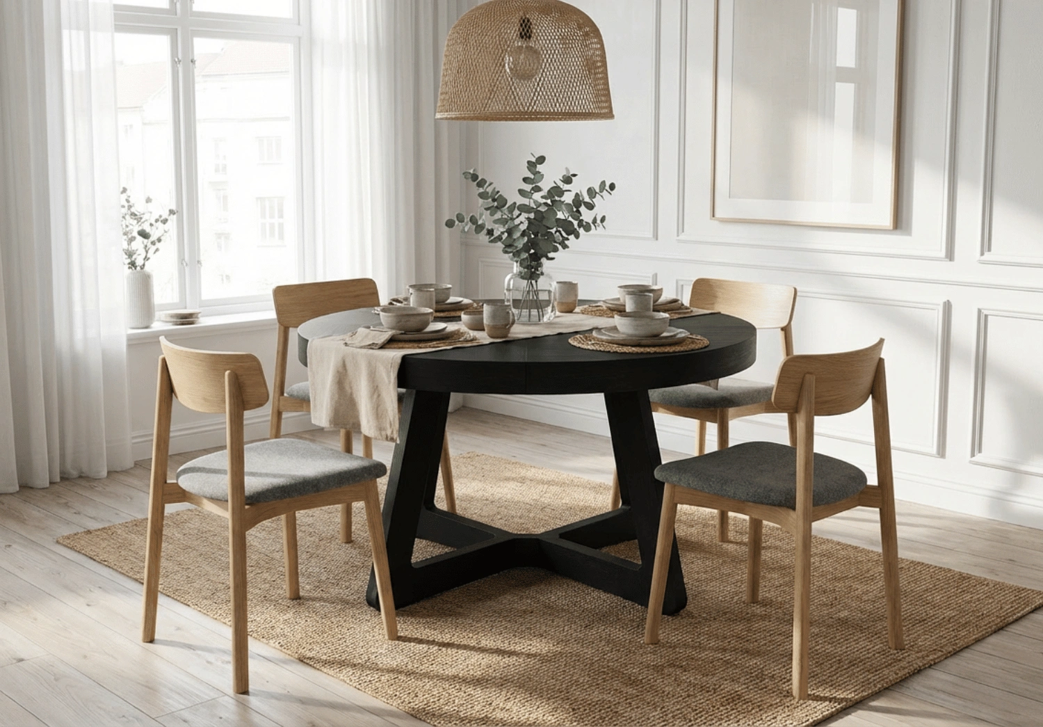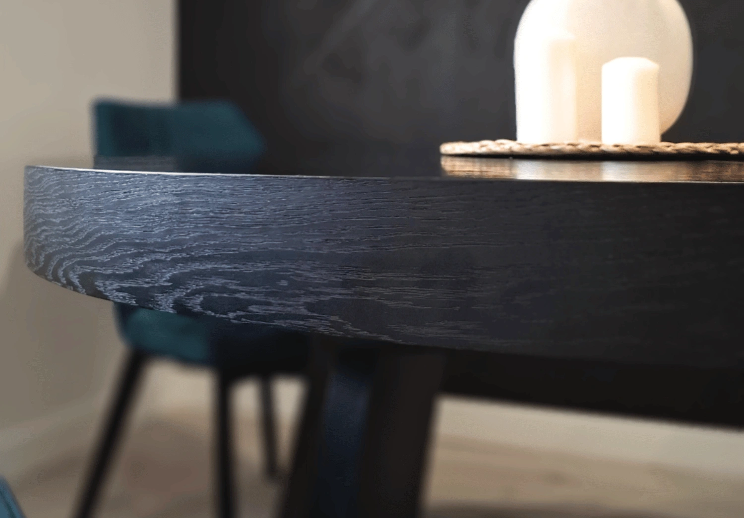 Der runde, ausziehbare Tisch T40 vereint zeitloses Design mit hoher Funktionalität. Die Tischplatte aus MDF mit natürlicher Eichenfurnier-Oberfläche überzeugt durch eine außergewöhnliche Maserung, während die stabilen, kreuzförmig profilierten Beine aus Massivholz für eine elegante Optik sorgen. Dank des hochwertigen Auszugssystems der Firma POTTKER lässt sich der Tisch auf eine Gesamtlänge von 230 cm erweitern, was ihn ideal für größere Anlässe macht. Der Tisch wird in festgelegten Größen gefertigt und kann nicht individuell angepasst werden – eine perfekte Kombination aus Ästhetik und Funktionalität.