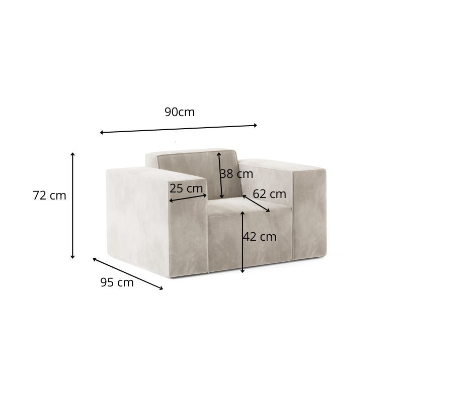 Der Sessel CARA ist mehr als nur ein Sitzmöbel – er ist ein Statement moderner Wohnkultur. Mit seiner klaren, kubischen Form, großzügigen Armlehnen und einer tiefen, gepolsterten Sitzfläche bietet dieser komfortsessel sowohl stilistische Raffinesse als auch erstklassigen Sitzkomfort. Der Einzelsessel passt perfekt in moderne Wohnräume, Design-Lounges oder minimalistisch eingerichtete Büros.
