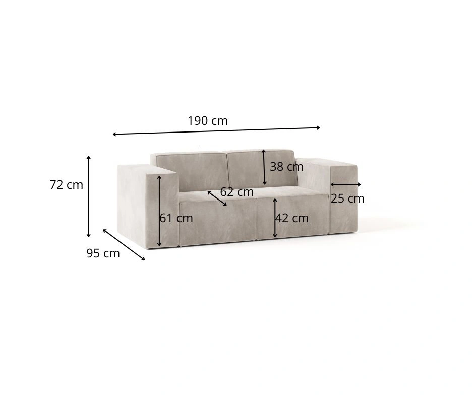 Der Verzicht auf eine Schlaffunktion unterstreicht den Charakter dieser Couch als hochwertiges Sitzmöbel, das auf puristischen Komfort und langlebige Qualität setzt. Das kubische Design mit extrabreiten Armlehnen, die weiche Polsterung und der angenehm samtige Bezug schaffen ein einzigartiges Lounge-Erlebnis – stilvoll, modern und einladend.