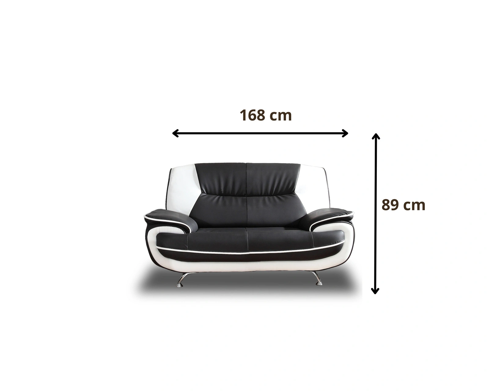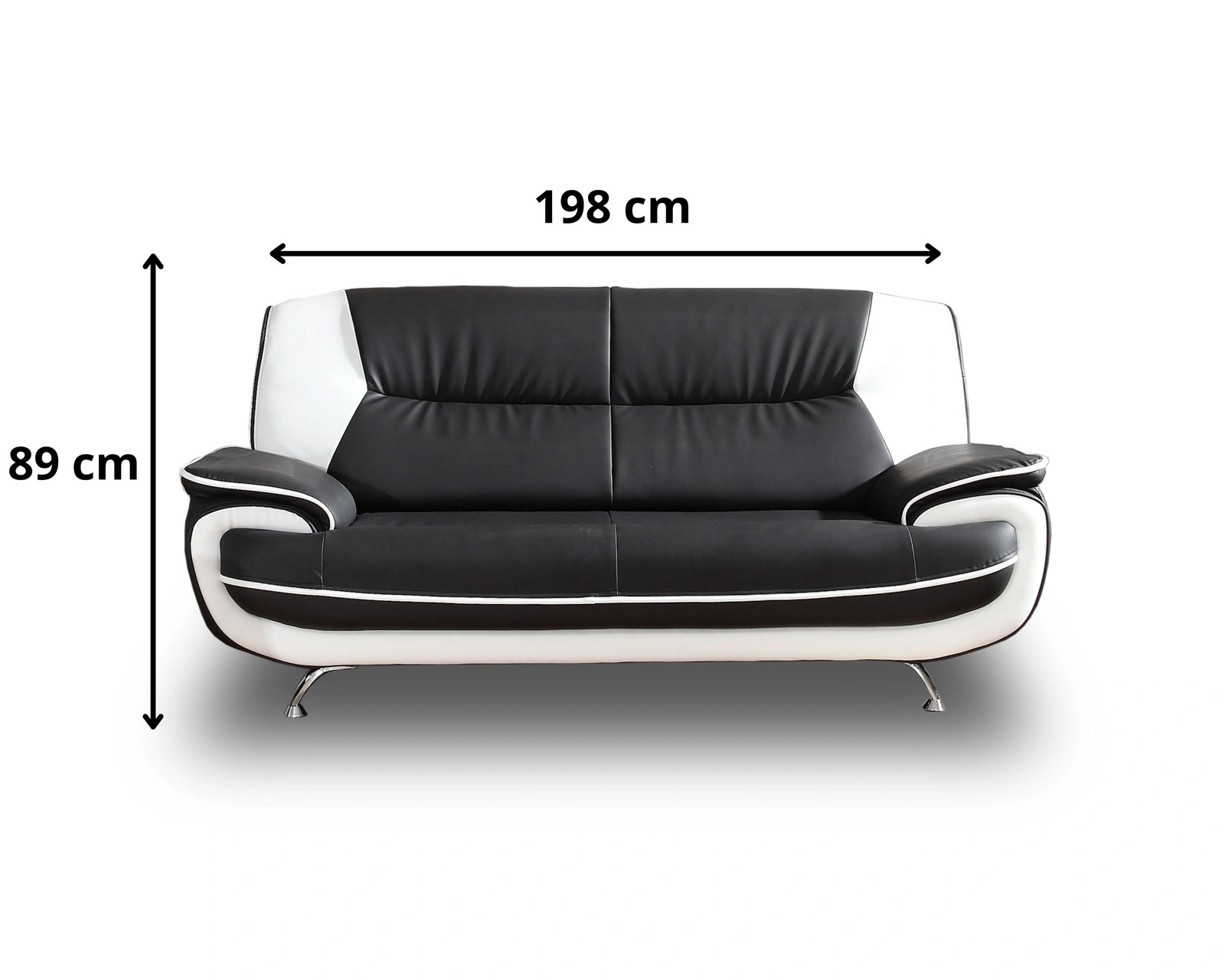 Das Sofa-Set Onyx 3-2-1 besticht durch modernes Design, hochwertige Materialien und ein zeitgemäßes Erscheinungsbild, das sich nahtlos in jeden Wohnraum einfügt. Das Set besteht aus einem großzügigen 3-Sitzer, einem bequemen 2-Sitzer und einem eleganten Sessel, die zusammen ein harmonisches und einladendes Ambiente schaffen. Alle Elemente sind mit einem stabilen Holzrahmen und langlebiger Polyurethanschaumpolsterung ausgestattet, was sowohl die Robustheit als auch die Langlebigkeit des Sets gewährleistet. Der Bezug besteht zu 100% aus Polyurethan und verleiht jedem Möbelstück eine stilvolle Kunstleder-Optik, die sowohl elegant aussieht als auch pflegeleicht ist.