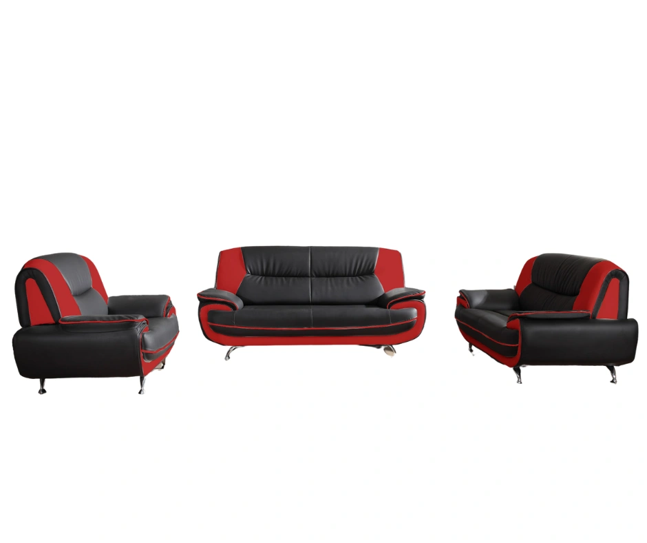 Sofa Set Onyx Set 3-2-1 Couch Set aus Kunstleder Farbauswahl (schwarz-rot)