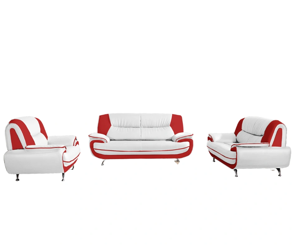 Sofa Set Onyx Set 3-2-1 Couch Set aus Kunstleder Farbauswahl (weiß-rot)